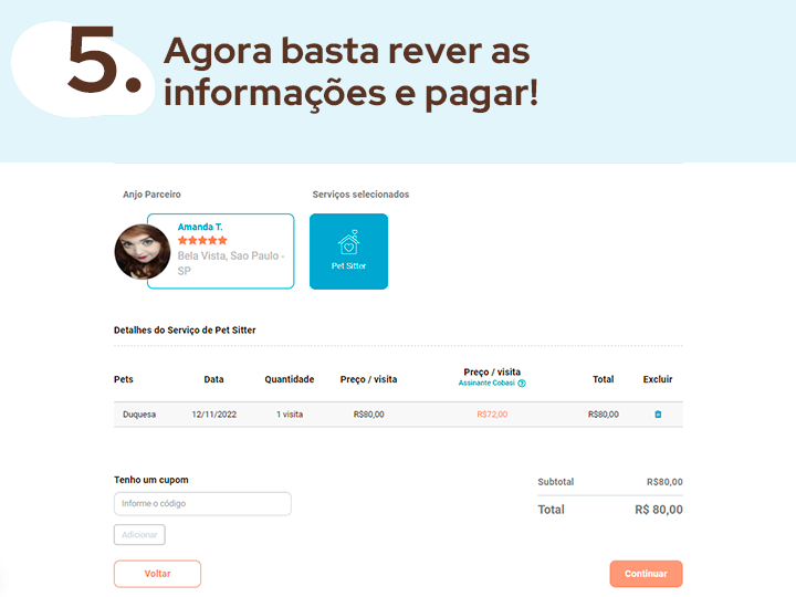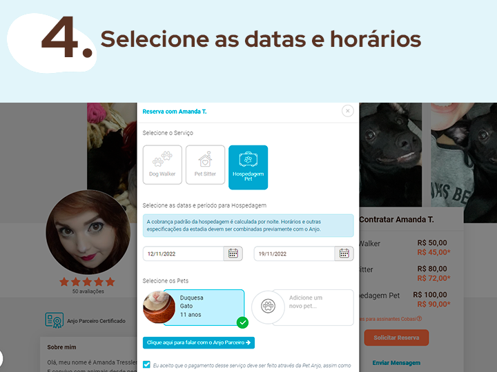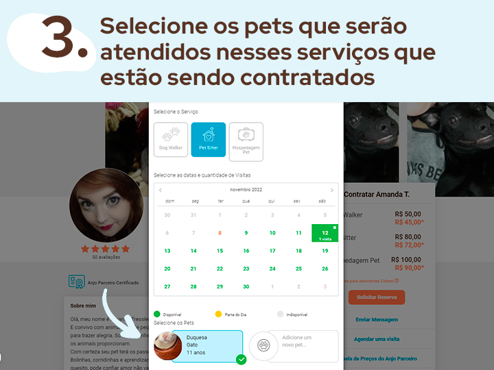 Confira a seguir um passo a passo e entenda como contratar um cuidador de animais em nossa plataforma.