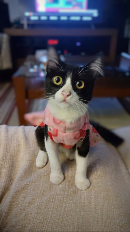 Tenho a Olivia e a Catarina, duas cadelas SRD de 8 e 9 anos respectivamente, e o Darth Vader e a Estela, um gato preto e uma frajola de 8 e 2 anos.